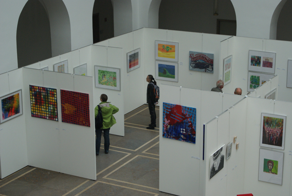 Noch bis zum 18. September sind im Landeshaus des Landschaftsverbandes Westfalen-Lippe an der Warendorfer Straße neue Werke aus dem Münsteraner „Atelier plus“ zu sehen, zu dem sich rund 30 Künstler mit psychischen Grenzerfahrungen zusammengetan haben. „Farbiges Mehr“ ist der treffende Titel der Ausstellung, denn viele Werke beeindrucken die Betrachter mit leuchtenden Farbwelten. Thomas Hak, künstlerischerer Leiter des Ateliers und Kurator der Ausstellung, erläutert das Motto: